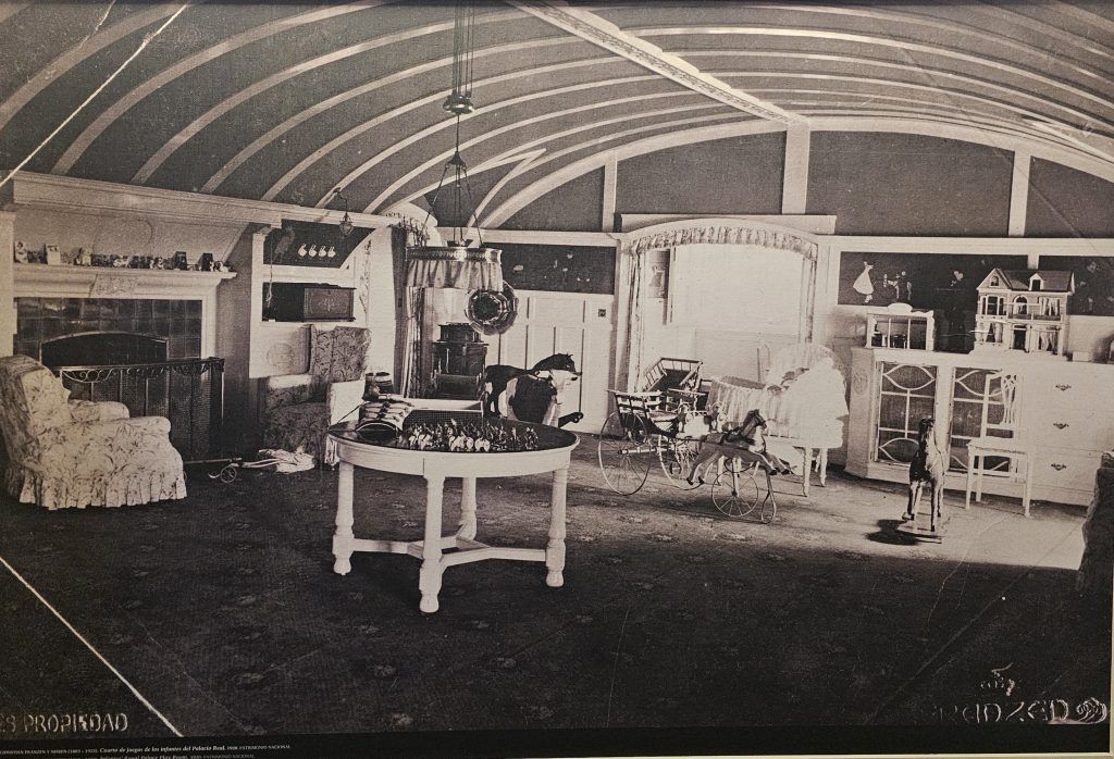 Las fotografías conservadas en el Archivo General de Palacio muestran las habitaciones destinadas a los hijos de Alfonso XIII y Victoria Eugenia. Estas estancias infantiles, situadas en la entreplanta del Ala de San Gil, estaban comunicadas directamente con los aposentos reales.