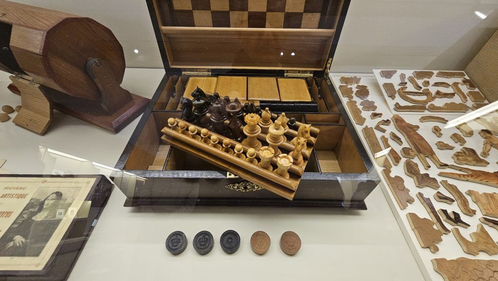 También destacan los llamados “juegos de paciencia”, como los puzles, pensados para jugar en solitario. Uno de los más llamativos es un puzle de madera dedicado a Napoleón y Josefina, ejemplo del valor artístico de estos objetos.
