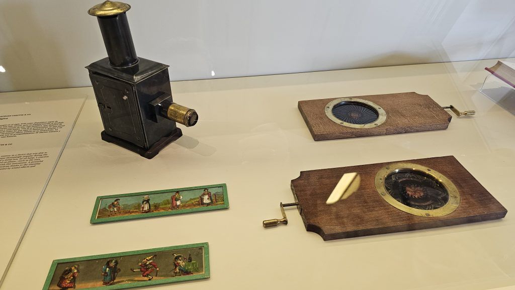 Desde la segunda mitad del siglo XIX, los juguetes relacionados con la óptica y el sonido tuvieron un papel destacado en el ocio infantil. Su funcionamiento se basaba en la llamada persistencia de la visión, principio científico que está en el origen del cine.